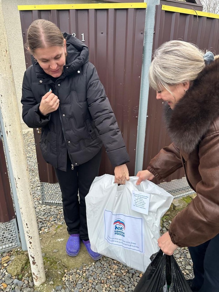 Благодаря финансовой помощи секретаря местного отделения партии Владимира Бухтиярова, индивидуального предпринимателя Николая Могильного и ООО «Энергия» было собрано 100 продуктовых наборов, включающих в себя муку, рис, гречку, тушёнку, масло, макароны, сахар, чай, сладости и другие продукты.