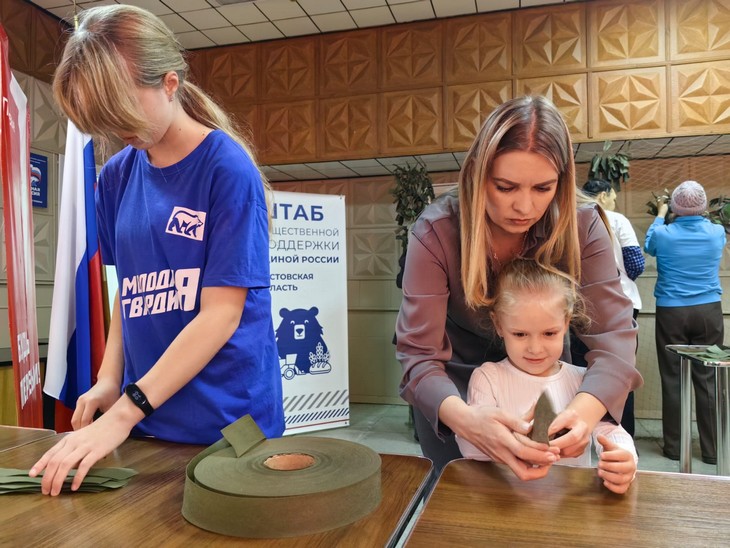 7 ноября в рамках работы Штаба общественной поддержки в Ростовской области активисты Пролетарского местного отделения партии «Единая Россия», сторонники, молодогвардейцы совместно с Центром общения старшего поколения и юными участниками Движения Первых «Орлятами-дошколятами» детского сада №32 «Лесная сказка» приняли участие в мастер-классе по плетению маскировочных сетей в зону СВО.