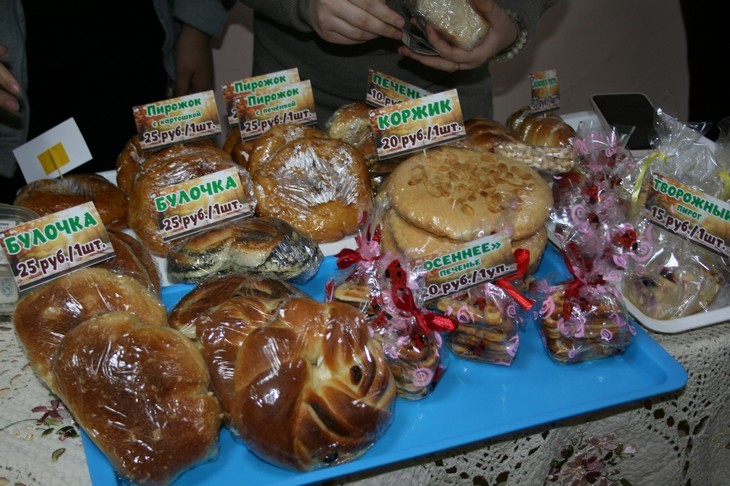 Почти на два часа школьный коридор первого этажа превратился в импровизированный рыночный павильон с оживлённой торговлей. На партах-«прилавках», украшенных в осенней тематике, разместилась продукция собственного производства – от свежей выпечки с домашними заготовками до оригинальных поделок. Представленное разнообразие и демократичные цены привлекли гостей со стороны. Юные предприниматели не только торговали, но и активно зазывали клиентов, не стесняясь, расхваливали свой товар. Ростовая кукла-примат оживляла мероприятие, превращая ярмарку в настоящий праздник. Максимальная вовлечённость учащихся в процесс способствовал их сплочению, проявлению организаторских навыков, развитию волонтёрства.
