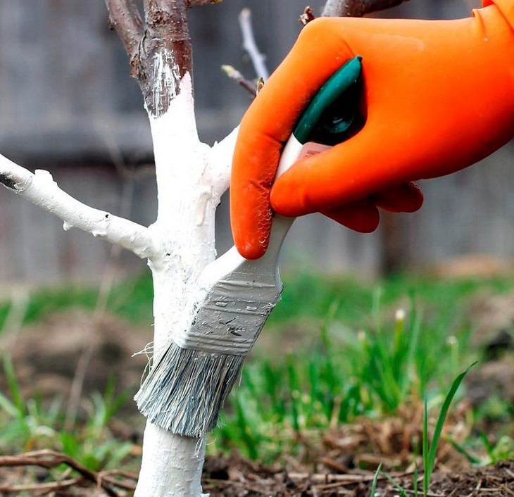 Белить стволы деревьев полезно, если среднесуточная температура не опускается ниже +6°C. Используйте известь, глину, коровяк и мучной клейстер, чтобы создать защитную оболочку от повреждений коры.