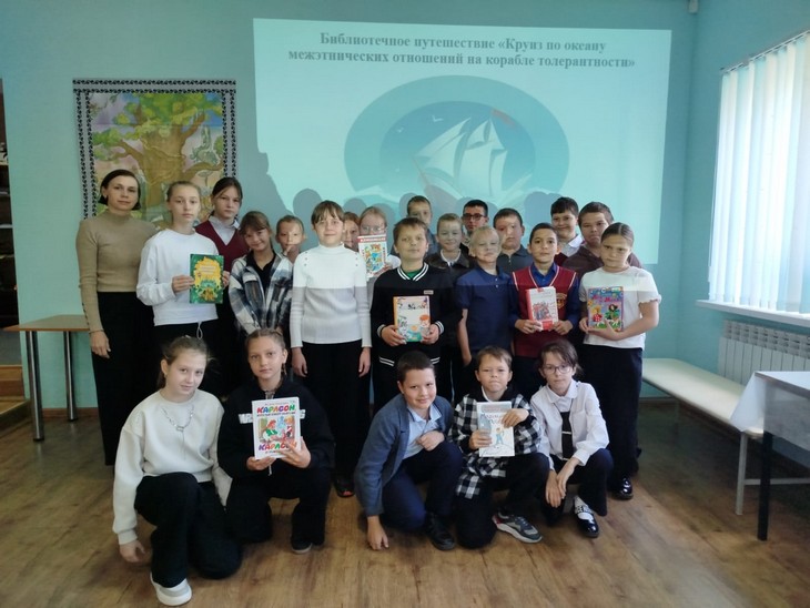 26 сентября сотрудники Детской библиотеки им. П.Г.Аматуни г.Пролетарска вместе с обучающимися 4 «Б» класса (кл.рук. Е.А.Бачина) СОШ №4 им. Нисанова Х.Д. отправились в библиотечное путешествие «Круиз по океану межэтнических отношений на корабле толерантности».