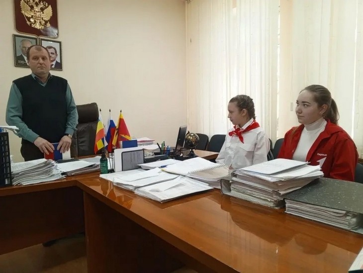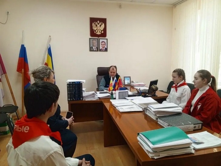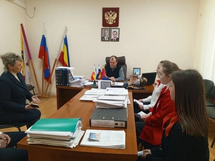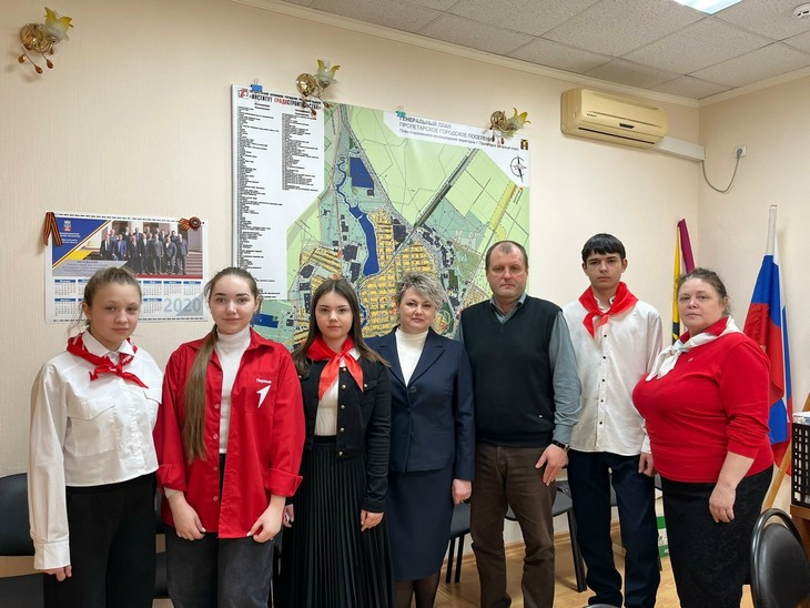Для школьников была организована советником директора по воспитанию Л.А.Чебурахиной и куратором Движения Первых Е.А.Олейниковой встреча с Максимом Николаевичем Толпинским— главой администрации Пролетарского городского поселения.