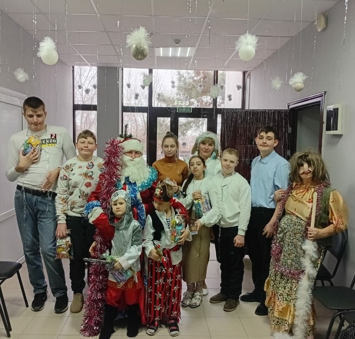 Развлекательная программа, состоящая из веселых новогодних конкурсов и игр, песен и плясок, стихов и, конечно же, традиционных хороводов вокруг красавицы елки, поднимала настроение участников в течение всего праздника. Детский смех и радость царили в Центре. Ребятам не пришлось скучать. С восторгом приняли гости поздравления Деда Мороза и Снегурочки, встречу с зажигательной Бабой Ягой! Сказочные персонажи веселили всех шутками, играми и забавами. Новогодние игры «Маскарад», «Колпак», «Новогодние лошадки» создали радостную атмосферу праздника. Ребята рассказывали стихотворения, танцевали, водили хоровод вокруг ёлки под песню в «В лесу родилась ёлочка». Сюрпризом для всех стали новогодняя дискотека с Бабой Ягой и вручение сладких подарков из мешка Деда Мороза.