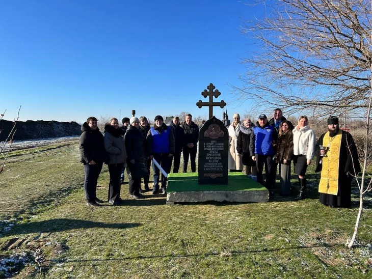 Камень, заложенный в фундамент, украсил образ Пресвятой Богородицы и изящные гравировки тюльпанов, символизирующих степную местность. На церемонии присутствовали местные жители, представители Русского географического общества, агрохолдинга «Просторы» и глава администрации Пролетарского района Валерий Горнич.