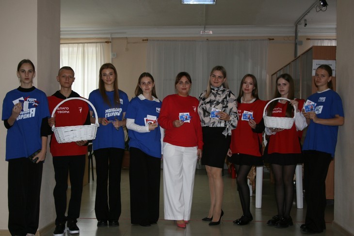 В фойе районного Дома культуры пожилые люди в свой праздник принимали поздравления от потомков — участников молодёжных движений, которые вручали гостям поздравительные открытки и сладкие презенты.