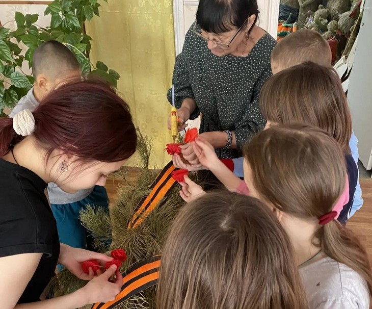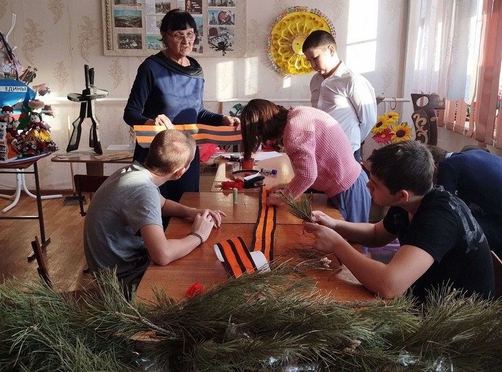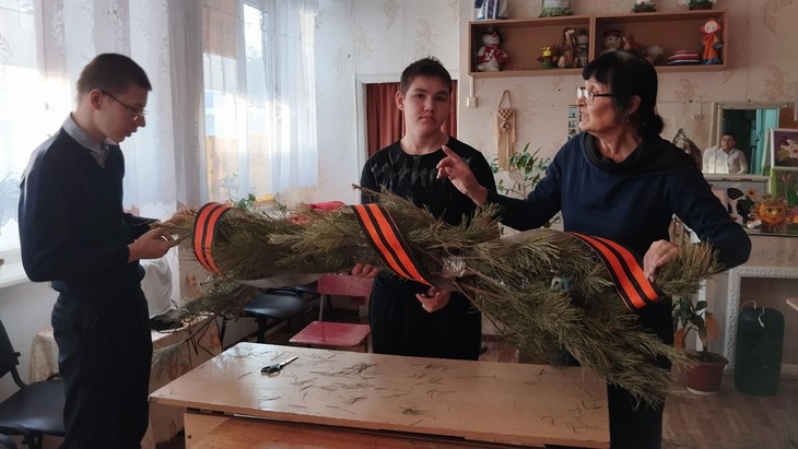 Ребята работали с природным материалом (ветки сосны и туи) и учились плести, понимая, что мы не имеем права забывать ужасы той войны. Традиция делать хвойные венки сохраняется с давних времён. Считается, что еловые ветки охраняют покой умерших, поэтому в памятные даты к мемориалам возлагают венки и гирлянды именно из ели, сосны и пихты.
