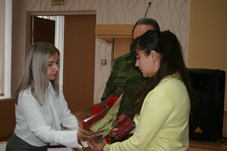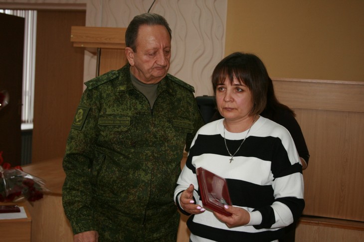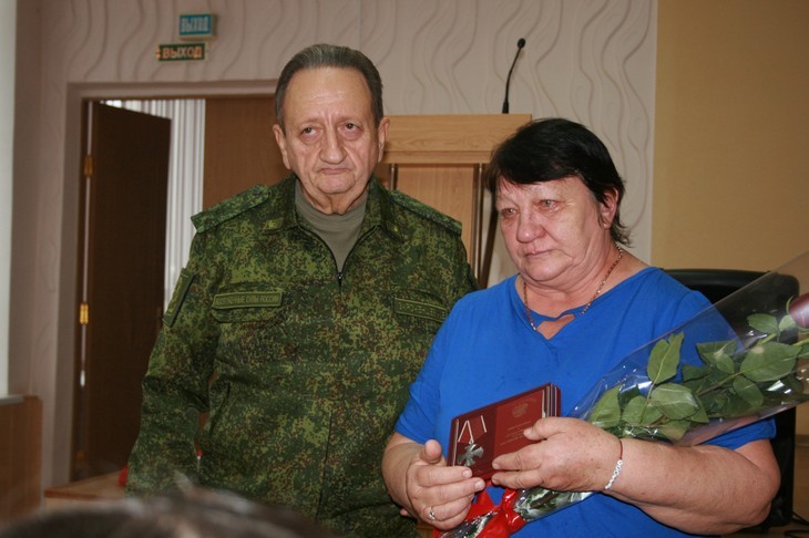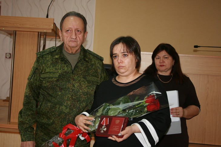 Вручали эту награду членам семей погибших героев СВО военный комиссар Пролетарского и Орловского районов полковник А.Е.Зароченцев и замглавы администрации района по внутренней политике И.Ф.Будыльская.