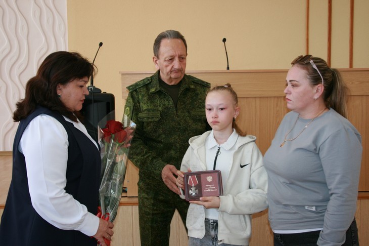 Ордена близким родственникам бойцов вручили военный комиссар Пролетарского и Орловского районов полковник А.Е.Зароченцев и исполняющий обязанности главы муниципалитета И.Ф.Будыльская.