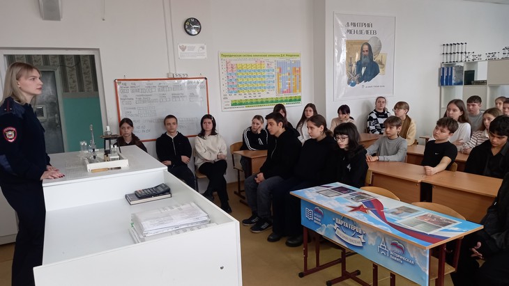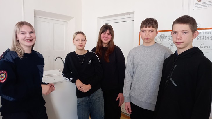 Инспектор рассказала ребятам о вреде табакокурения и оборота электронных сигарет, никотиносодержащих смесей; о буллинге, в том числе о кибербуллинге; об экстремизме и терроризме; о мошенниках, об опасных группах в соцсетях. Она озвучила статьи закона о наказании за правонарушения и преступления, об ответственности родителей несовершеннолетних.