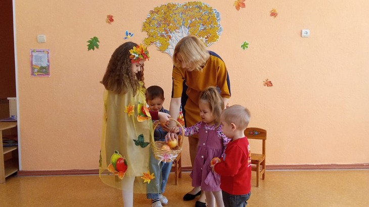 Осенний праздник стал настоящим подарком для всех участников! А самым ярким и запоминающимся эпизодом стал сюрпризный момент — корзина с яблоками от «Осени» для всех дошколят!