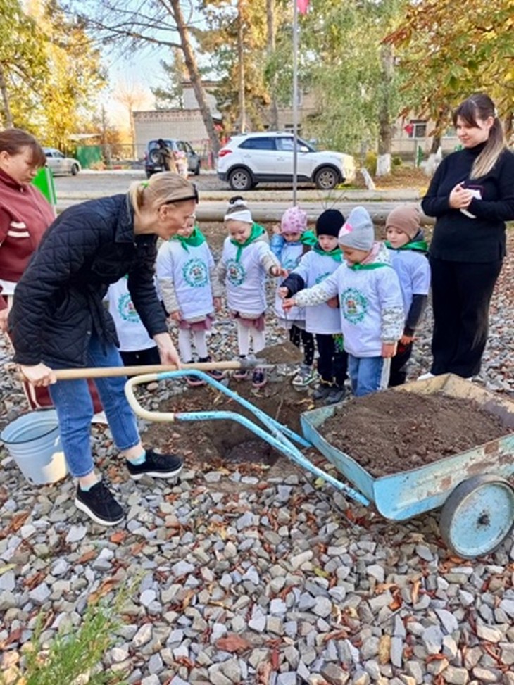 2025 год — не стал исключением. 18 октября с помощью профсоюзной организации работников образования Пролетарского района были приобретены 3 саженца бер1зы и 1 липа. После чего наши «Эколята -дошколята» совместно со своим руководителем и родителями высадили в «Саду Памяти» молодые деревца. Это мероприятие помогло детям почувствовать себя частью природы и осознать свою ответственность перед ней.