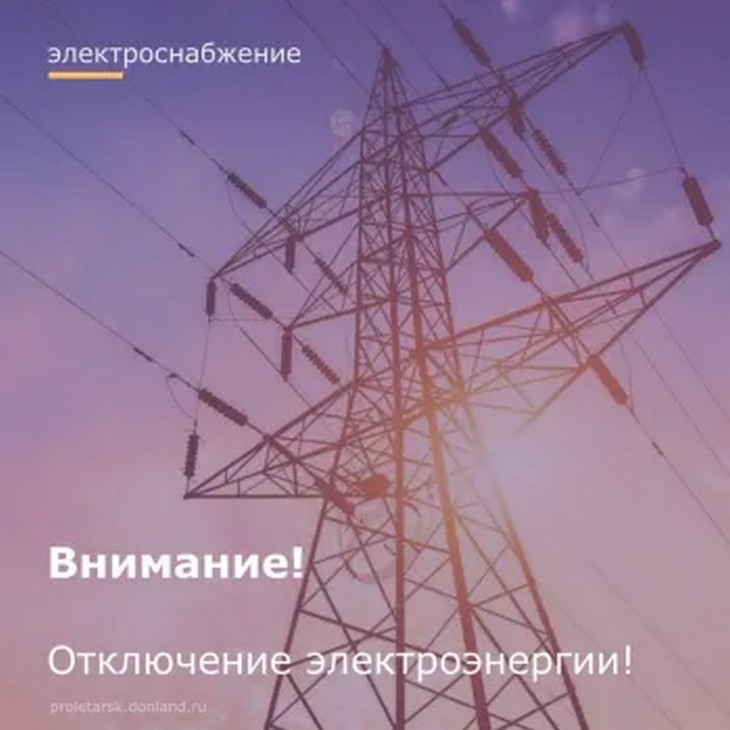 В связи с проведением ремонтных работ в электроустановках Пролетарского района электрических сетей будет отсутствовать электроэнергия в х.Сухом по улицам Восточная, Партизанская, Пионерская – 31.03.2026г. с 09.00 до 16.00.
