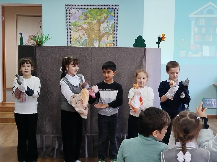 24 апреля в Детскую библиотеку им. П.Г. Аматуни г.Пролетарска были приглашены обучающиеся 1 «А» класса (кл. рук. И.А.Тарасова) и обучающиеся 2 «Б» и 3 «Б» классов гимназии №3 на театральный час «Библиотека и искусство».