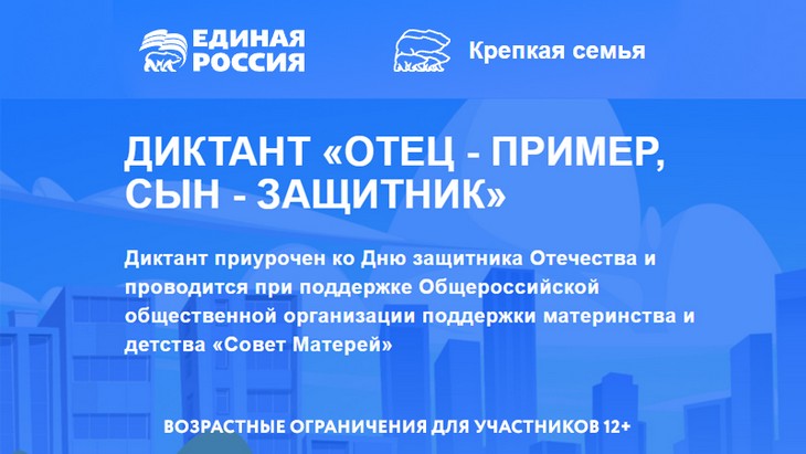 Диктант доступен для всех желающих и не требует предварительной регистрации. Пройти его можно в любое удобное время на официальном сайте проекта «Крепкая семья» до 2 марта.