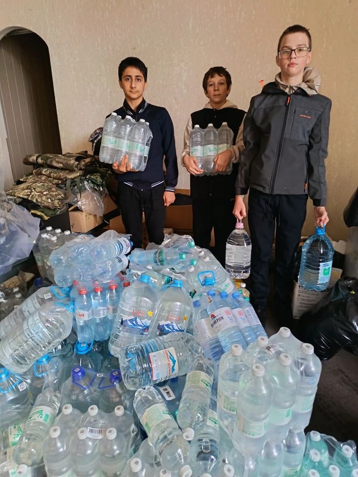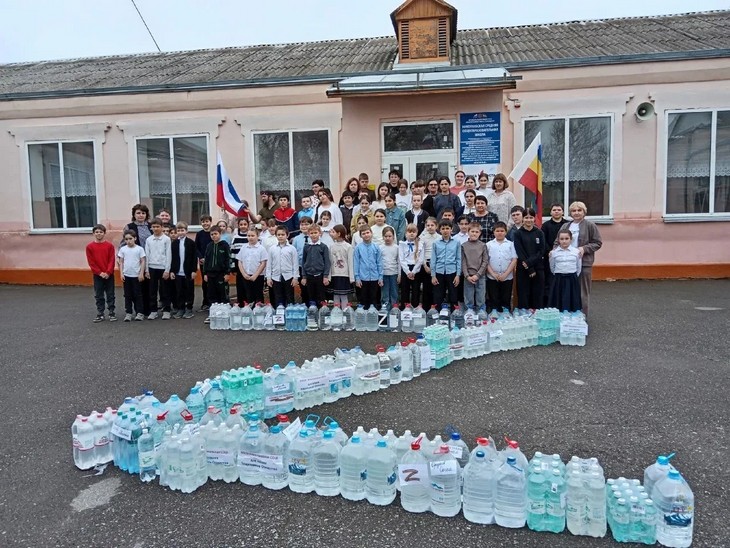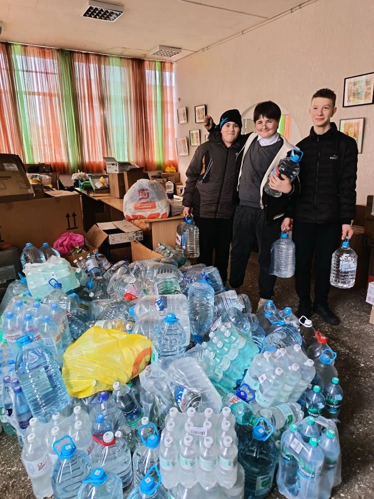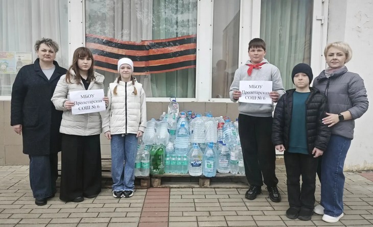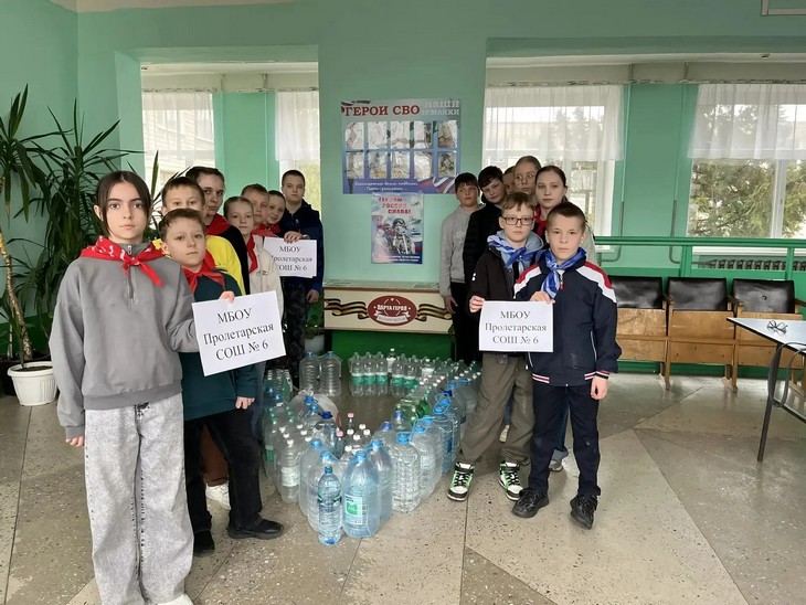 Итоги недели впечатляют: общими усилиями собрано около 7 тонн питьевой воды для отправки на фронт. Учащиеся гимназии №3, школ №4 и №6 г. Пролетарска привезли целое «озеро добра», школьники Николаевской школы также внесли свой вклад в общее дело.
